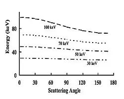 - This is illustrated in Figure 3.3, which shows a plot of the energy of the scattered photons versus angle, as a function of the energy of the incident X-rays.