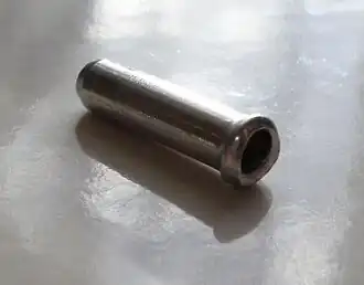 - Cable caps: These are small metallic pieces (see image) that fit over the open cable ends to prevent fraying. They are usually crimped with pliers, though some can be soldered. Alternatives to these include spoke caps and lead fishing weights. Do not confuse these with ferrules: ferrules fit onto cable housings while end-caps fit onto the free ends of steel cables.