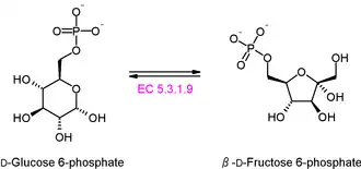 Step 2: Isomerization of glucose-6-phosphate catalysed by means of phosphoglucoisomerase: