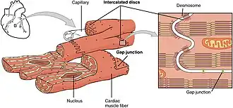 Intercalated discs are part of the cardiac muscle sarcolemma and they contain gap junctions and desmosomes.