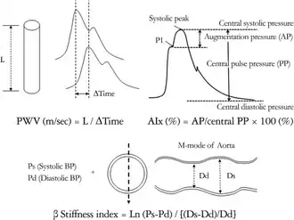 63. Nichols WW (January 2005). "Clinical measurement of arterial stiffness obtained from noninvasive pressure waveforms". Am. J. Hypertens. 18 (1 Pt 2): 3S–10S. doi:10.1016/j.amjhyper.2004.10.009. PMID 15683725.