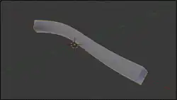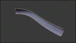 Now try adding a third curve object. (As with custom bevels, only curve objects will work.) Go back to your first curve, find the “Taper Object:” field (it should be next to the “Bevel Object:” field you’ve already used), and select the name of your newly-added curve. The bevelled shape will now most likely squish down in a most peculiar way. Select your third curve, that you are using as a taper, and go into Edit mode. Now try adjust control points, and observe the effect on the bevelled shape: what you should find is that the object-local Y-coordinate of each control point governs the thickness of the bevelled shape at the corresponding position along the shape given by its X-coordinate, while the object-local Z-coordinate doesn’t have any effect.