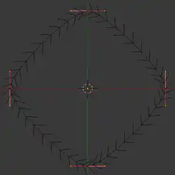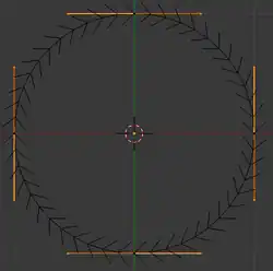 Now we will try using another curve to supply the cross section. Add a Bézier circle shape. TAB into Edit mode. Now, select just the end points of the handles (not the control points themselves). In the Pivot Point menu, select “Individual Origins”. Now S cale down to 0.4.