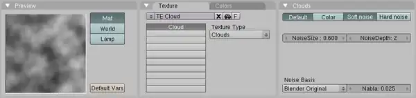 • Use an adjusted Clouds texture with a NoiseSize of 0.6.