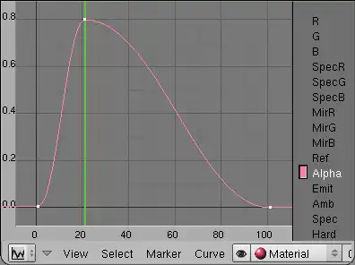 Note: In Blender 2.6, IPO curves no longer exist. Select the graph editor view to get the same capabilities. Also note that in the texture settings from the previous section you need to enable (and set to 1) the Alpha setting in the "influence" section, otherwise the Alpha animation will be applied to the particle system as a whole not to the individual particles.