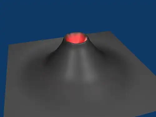 Now we're going to create the "hole" on the volcano. First change the falloff to "root". Grab the vertex one more time, change the size of the circle so it's more or less as seen in the picture.