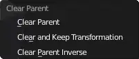 - Clear Parent: remove the parent/child relationship, and reset the child to the original transformation it had before the parenting.
