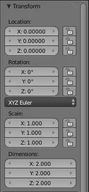 This can be useful for a child object: if its object transforms are locked, it will still follow changes to transformations on its parent, but it cannot have its transformation changed directly. This can prevent accidents when manipulating an “object” which is actually made up of multiple Blender objects: parent them all to a common root object (e.g. an Empty), and then lock them all, apart from the root object, and so they will transform together by manipulating just the root object, and cannot (accidentally) be separated.