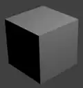 Note the lower left visible face of the cube is completely black because the default light is at the upper right.