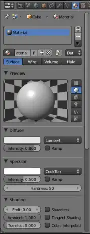 The materials context contains various menus, but for now you only need diffuse, specular and mirror. The material is named and linked in the panel above the preview window. (Linking is a feature that allows materials to be shared between multiple objects (or datablocks). Changing a material affects the appearance of everything it is linked to.)