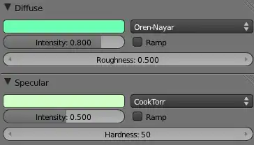 Duplicate intensity sliders? There are two ways to control the intensity of the colour: there is the vertical intensity slider at the right of the colour picker popup, and there are also the intensity fields at the bottom of the Diffuse and Specular panels (above), the final intensity being the combination of both values. Why two different ways?