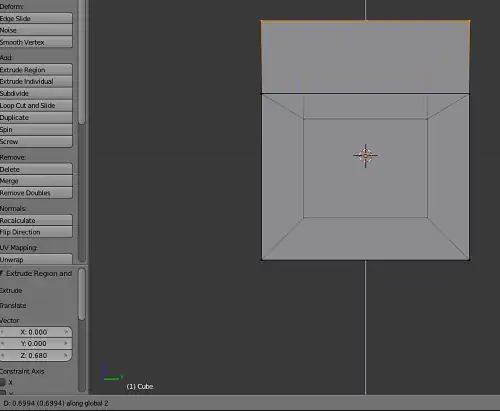 - Make sure Blender is in Edit Mode, with the top four vertices selected.
