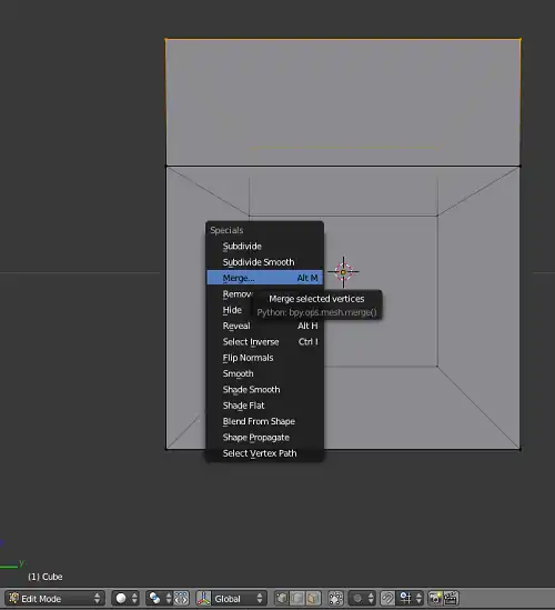A message should appear on the Info header saying that 3 vertices have been deleted, this is because in order to merge four vertices into one, three vertices must be deleted.