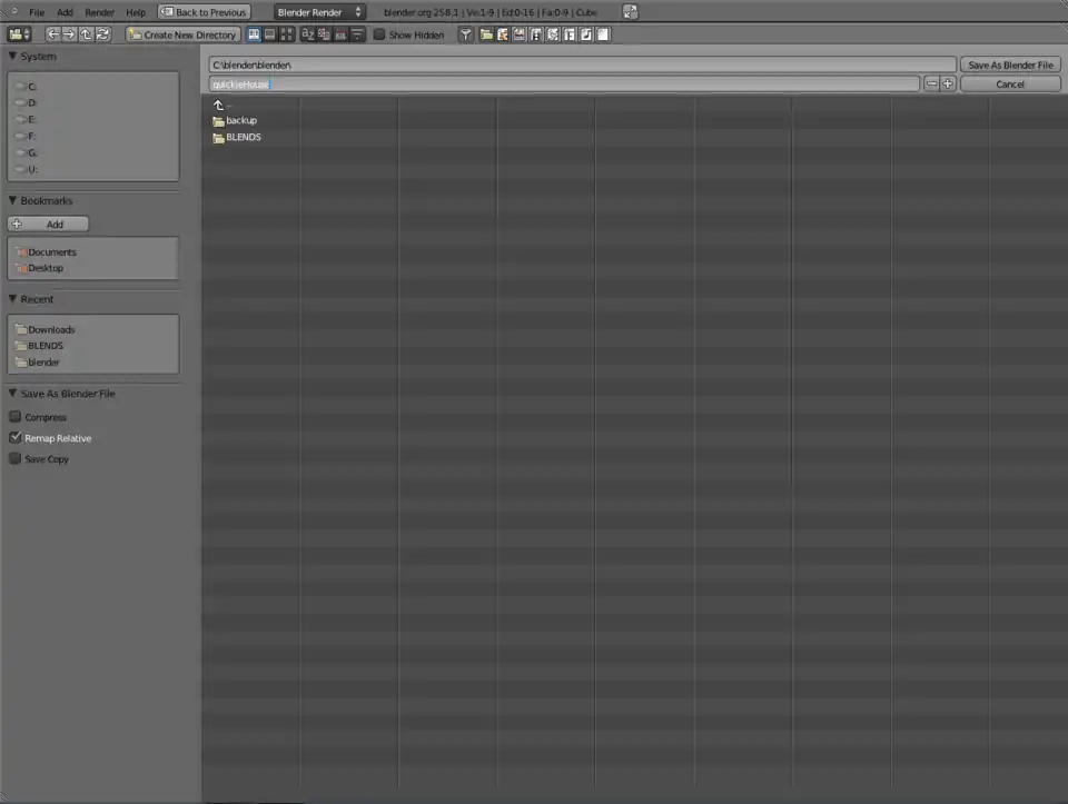 - Click LMB on the "Save As Blender File" button. As soon as the save operation is complete, the window will automatically revert to its former type.