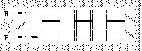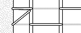 The thread is always sewn inside the fold of the section at each end of the book; except at the ends, the threads of successive sections alternate, so that the sewing pattern on the back of a finished book (with 4 sections in this example) should look something like is shown in Figure 6.1: