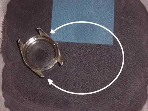 Wet the coarsest sandpaper you'll be using and place it over the mouse pad. Check the height of the crystal, the angle you'll need to sand, and make sure you won't sand the bezel--If that's a danger, tape it up or remove the crystal. Sand in one direction, across the direction of the worst scratches by moving the crystal back and forth over the paper. You may decide to leave some traces of very severe scratches, or scratches around the edges if removing them might make the crystal too thin.