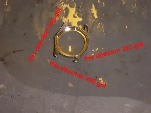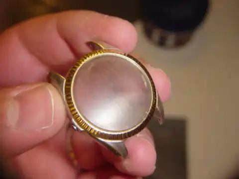 An alternate method of sanding crystals is to use sanding sticks of decreasing coarseness followed with a polishing compound. These sticks may be purchased in hobby shops and have the advantage of being flexible. This allows them to conform to the shape of the crystal when polishing. The method used is to place the crystal on a suitable surface (I use a mousepad) face up and sand holding the sanding stick in the thumb and first two fingers of the hand. Using this method there is no danger to the bezel since the crystal has been removed. My results have been quite favorable.
