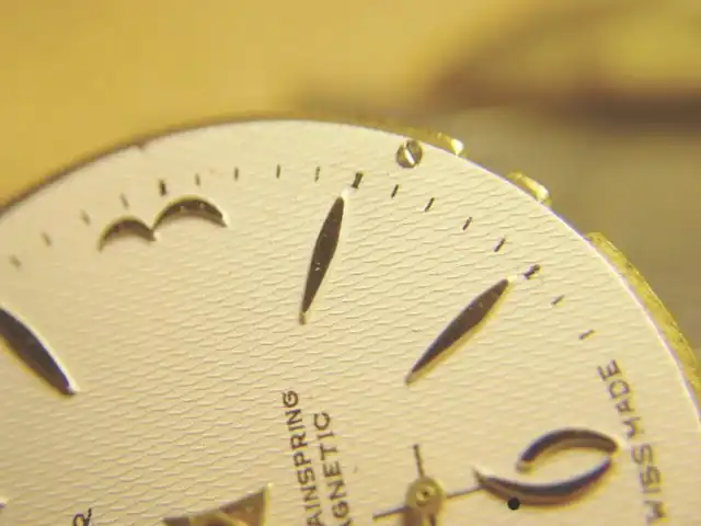 Most good watches will have two dial feet or posts with some sort of screw to retain them.