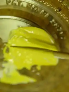 Mix the paint as required for the appropriate color and texture. It should be reasonably thick, but still liquid rather than paste. I used several colors of acrylic here, trying to duplicate the original as closely as possible.