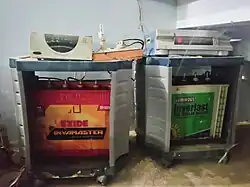 AC and DC voltage waveforms. Alternating Current (AC) is the type of electricity found in the outlet in your home. DC Direct Current is what you would find in the outlet of your car. DC electricity is also the type of electricity stored in batteries. Generators at big power plants use rotating alternators to produce AC electricity while the dynamo found in your bicycle (still a rotating machine) produces DC. Commercially available solar cells only produce DC electricity and their excess power output is most readily stored in deep cycle batteries. In order to run most appliances in your home, you will need to use a power inverter which changes the DC voltage to AC. Inverters range in size from the very small 50 watts all the way up to 5Kw. You should consider what appliances and equipment you intend to run off your power inverter. Cheaper power inverters will typically use a square wave output signal to create the AC voltage. More sensitive equipment such as computers will require pure sine wave outputs. Pure sine wave power inverters are typically more expensive.