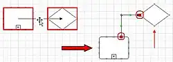 Visio© uses drag and drop to create diagrams that use shapes provided on shape ‘stencils’. Connectors that are included on the stencils are used to indicate flows, relationships, messaging or other object interface connections or associations. Objects may be modified in Visio© by right-mouse clicking on them. The pop-up menu displayed may include extra properties embedded in the object that can be adjusted.