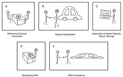 Storyboards can be used to illustrate steps in a process (see figure at right), providing an effective tool for eliciting requirements and communicating with project stakeholders. They may closely mimic an actual or planned activity, helping to focus participants in a requirements gathering meeting on the specific tasks discussed.
