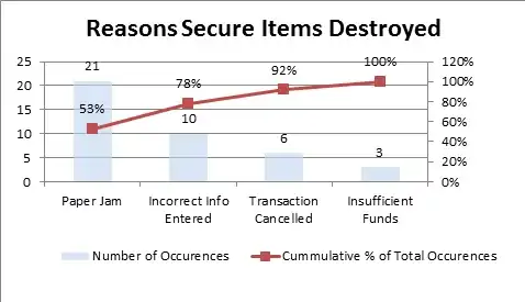 In constructing a check sheet, it's as simple as identifying the things you want to count and then counting as they occur. After a reasonable period of time, just count up the occurrences. In this example, the errors identified point to a paper jam (problem with paper and equipment) and incorrect information entered by the operator. For the paper jam—it could be the printer or it could be the material you are trying to print (weight, material, coating, etc.). To address this problem—it will be necessary to do several trial tests to help discern what the true root cause is. For the “incorrect info entered” it may be as simple as retraining cashier B or adding some behind the scenes edit checks to look for common errors. In all instances—it is best to focus on items within your immediate control and environment first, before trying to throw technology at the problem. Once the data has been collected, one powerful tool you can use to document the results is called a Pareto Diagram. The Pareto Chart displays the relative importance of problems or occurrences and is based on the principle that 80% of the problems result from 20% of the causes. The basis for the 80-20 rule was an Italian economist, Vilfredo Pareto, who noted that 80% of the land was owned by 20% of the people. By applying the results from the check sheet above, a sample diagram is below: