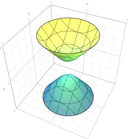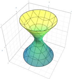 An image of a cone. Note that vertical traces in the planes and are hyperbolas if but are pairs of lines if .