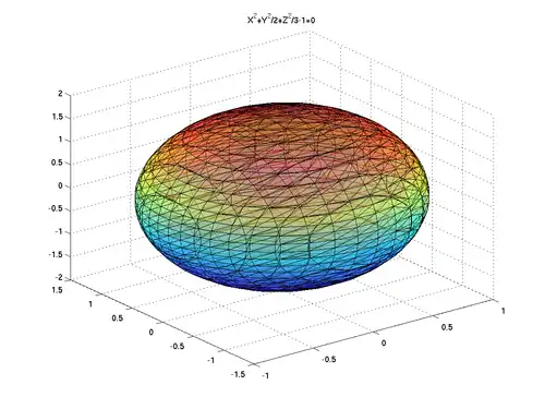 An ellipsoid with an equation . See that if we intersect the ellipsoid with planes parallel to axis planes, the intersection will always be an ellipse.