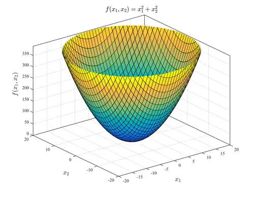 An elliptic paraboloid with equation . Note that the horizontal trace is an ellipse and both vertical traces are parabolas.