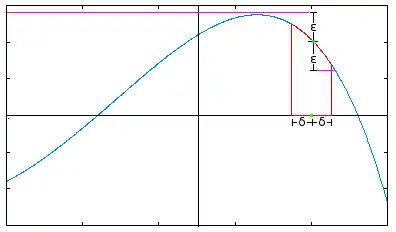 (We want the thing in the middle of the inequality to be because that's where we're taking the limit.) We normally choose the smaller of and for , so , but any smaller number will also work.