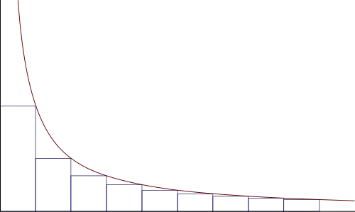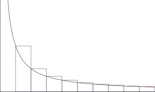 Let us look at why this test works. As an example, we'll use the harmonic series . The harmonic series is a well known series that actually happens to be divergent. If we want to approximate the integral, we can use rectangles like in a Riemann Sum: