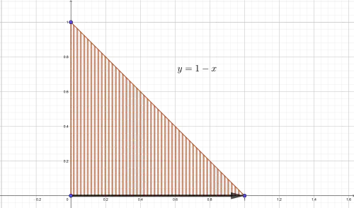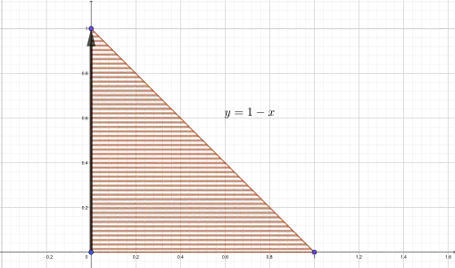If we integrate in this order, the computation will be very tedious. Thus, we will interchange the integration order using generalized Fubini's theorem to ease the computation. Originally, the bounds are and (given a fixed ). If we integrate over first instead, the suitable expressions of bounds are and (given a fixed ). Therefore,