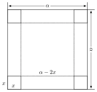 It is desired to make an open-top box of greatest possible volume from a square piece of tin whose side is by cutting equal squares out of the corners and then folding up the tin to form the sides. What should be the length of the side of a cut-out square?