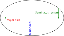 where is the eccentricity and is the semi-latus rectum (the perpendicular distance at a focus from the major axis to the curve).