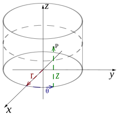 The cylindrical coordinate system is a coordinate system that essentially extends the two-dimensional polar coordinate system by adding a third coordinate measuring the height of a point above the plane, similar to the way in which the Cartesian coordinate system is extended into three dimensions. The third coordinate is usually denoted (or simply , i.e., same notation as Cartesian coordinate system), making the three cylindrical coordinates (or ).