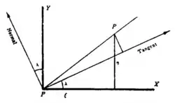 Let a point on the curve be transformed by a variation into the point and let the displacement be denoted by ; further, let the components in the and directions be and , while and denote the components of this displacement in the direction of the normal and the tangent to the curve at the point .