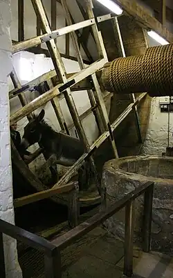 When the well was particularly deep, lifting sufficient water for the castle population would have been a back-breaking task. To mitigate this, donkey wheels were sometimes installed to provide power for the lifting mechanism.