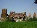 Brick tower built in earlier moated enclosure for Ralph Cromwell, restored in 1911-25 by Lord Curzon. | |