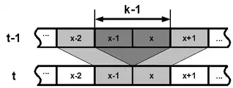 Neighborhoods of adjacent cells are overlapping for cells. There are different overlaps or written in compact form .