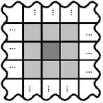 Is a simple square (usually 3×3 cells) with the output cell in the center. Usually cells in the neighborhood are described by directions on the compass sometimes the central cell is omitted.