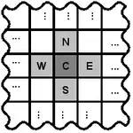 It is the smallest symmetric 2D aligned neighborhood usually described by directions on the compass sometimes the central cell is omitted.