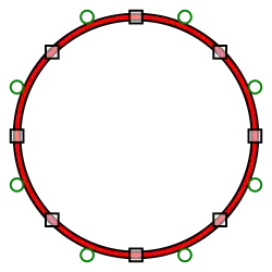 A quadratic Bézier spline out of 8 quadratic Bézier curves.