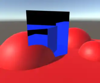 This step has to be performed after the rest of the opaque scene is rendered such that the portal is only rasterized into those pixels where it is actually visible. We make sure that the portal is rendered after the opaque scene by using this line in the shader for the portal: