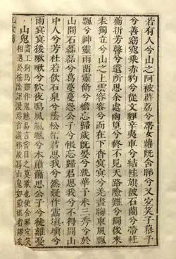 Chu Ci, traditionally attributed mainly to Qu Yuan and Song Yu from the Warring States period, though contains a lament of politics in the Chu kingdom, has a piece dedicated to mythologies: Heavenly Questions. According to legend, Qu Yuan wrote this piece in verse after being exiled from the royal court of Chu and viewing various scenes depicted on temple murals.