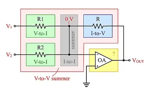 Building a Parallel Voltage Summer (by using more elementary circuit building blocks)