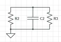 C2 is discharged by the parallel combination of R2 and R3: