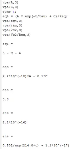Need to solve the above two equations for A and C, then can compute i(t). This is going to be messy symbolically.