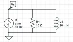 initial current through the inductor is zero, thus is an open, thus all the current is going through the resistor