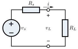 Let us consider a source modelled by a Thévenin equivalent (a Norton equivalent will lead to the same result, as the two are directly equivalent), with a load resistance, RL. The source resistance is Rs and the open circuit voltage of the source is vs:
